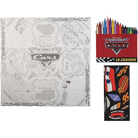 It's playtime with Lightening McQueen! You will love our Disney Cars table top coloring and activity mat. Each package includes table top activity mat, 6 crayons and a sticker sheet. Warning:Choking hazard-small parts. Not for children under 3 years.